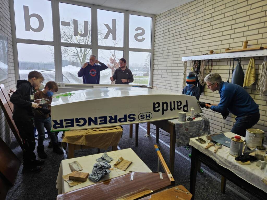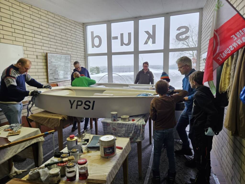 Eine Saison im Wasser hinterlässt Spuren an unseren Optimisten, daher haben wir uns in den vergangenen Monaten insgesamt dreimal zur Bootspflege der Optis in unserem Clubhaus getroffen. Nun glänzen Ypsi, Pinky und Panda wieder und liegen bereit, am 12. April an den Steg zu wandern. Unsere Jüngsten (und einige Ältere) lernten den Umgang mit Schleifpapier, Spachtel und Lack unter der fachkundigen Anleitung u.a. von Mathias, Karel und Dagmar. Auch beim Anbringen der Schutzstreifen entwickelte der Eine oder die Andere großen Ehrgeiz. Herzlichen Dank an alle kleinen und großen Helfer.