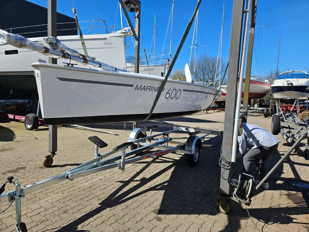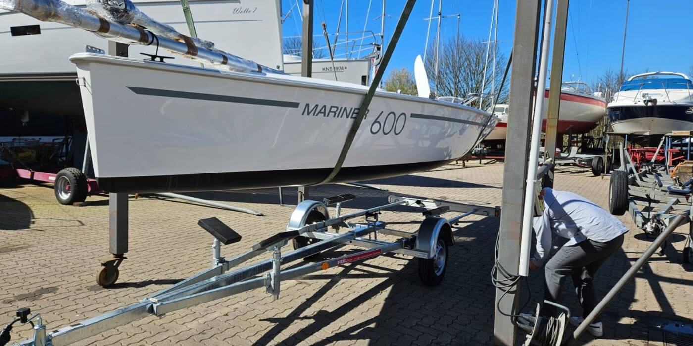 - Zweiter Halt: Siek Nach dem erfolgreichen Abholen des Anhängers ging es weiter nach Siek. Hier wartete das eigentliche Highlight der Reise – unser neues Boot, die Mariner 600. In Siek legten wir eine Pause ein, um uns zu stärken und die letzten Vorbereitungen für die Rückfahrt zu treffen. Die Vorfreude auf das neue Boot war spürbar. Als wir ankamen hing das Boot schon am Kran und konnte zügig verladen werden.