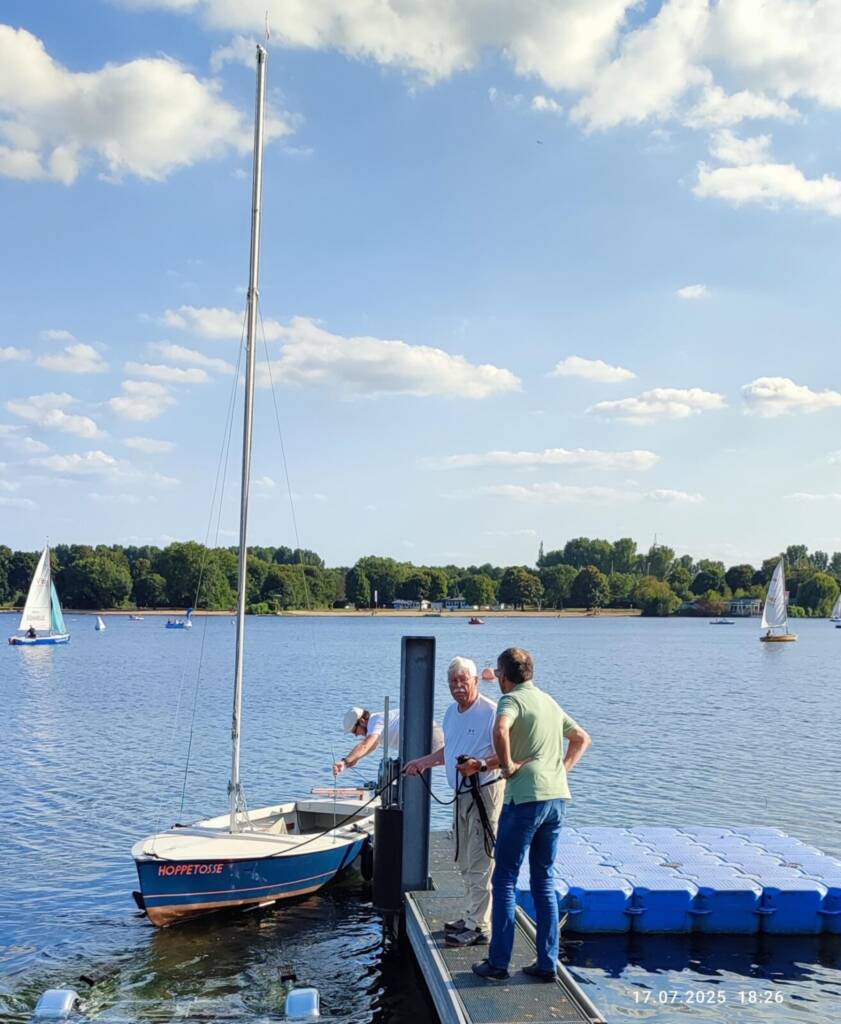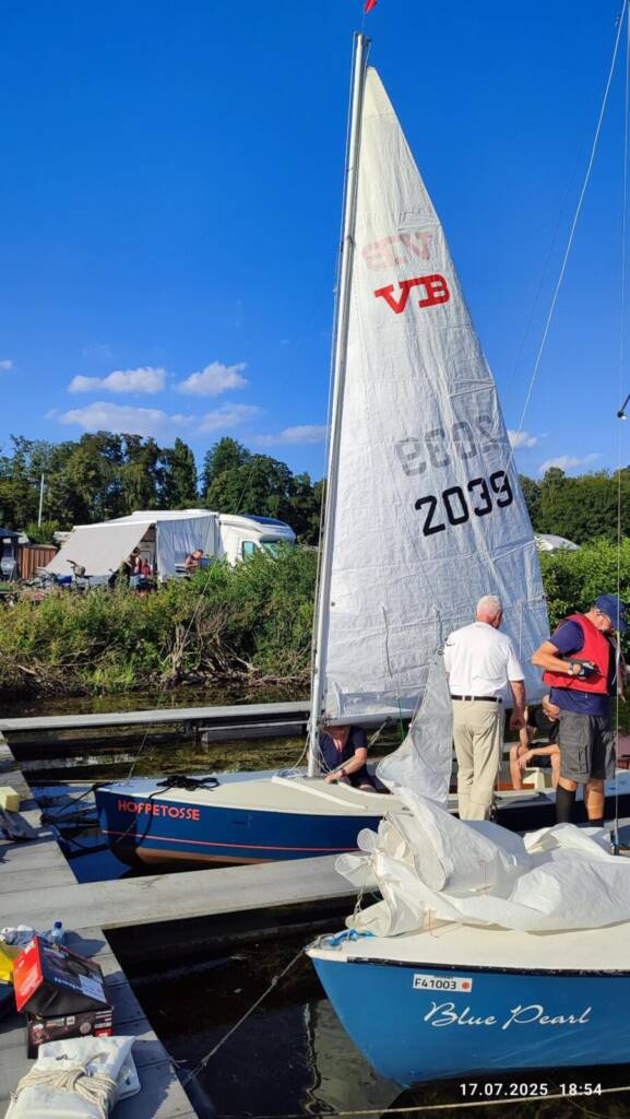 Keine 24 Stunden später machten sich Dagmar und Michael auf den Weg nach Aerzen, um das Boot persönlich abzuholen. Nach zwei Jahren in einer Garage hat die VB Jolle nun einen Platz, wo sie hingehört – im Wasser und mitten im Geschehen unserer Ausbildungsarbeit.