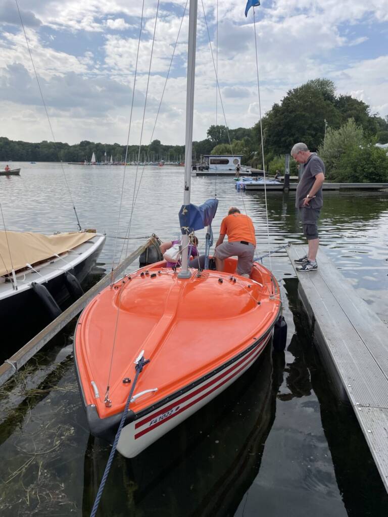 Am Dienstag war es dann endlich soweit: Das Boot segelt! Es lädt zum sportlichen Segeln ein, aber auch zum entspannten Herumfahren. Wir freuen uns auf eine rege Nutzung!