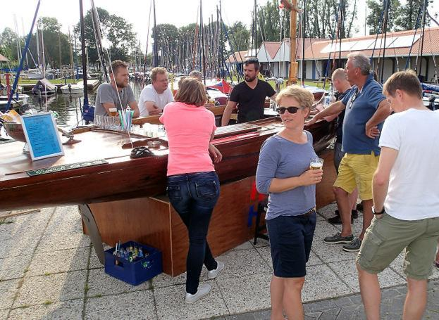 Unser Ziel: Koudum, einmal das Heeger Meer von Ost nach West. Die Wettervorhersage sagte Wind aus Ost, später drehend auf West. Genau so kam es. Raumschots hin, kurze Pause am Restaurant vom Campingplatz Koudum, Winddreher, immer mehr Sonne und Raumschots wieder zurück. Im Heimathafen gab es dann ein frisch gezapftes an der zur Außenbar umgebauten BM-Jolle.