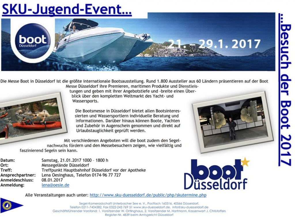 Am 21. Januar möchten wir mit den Jugendlichen die Boot Messe besuchen. Wenn ihr mitkommen möchtet, könnt ihr euch unter dem Link bei Doodle anmelden.