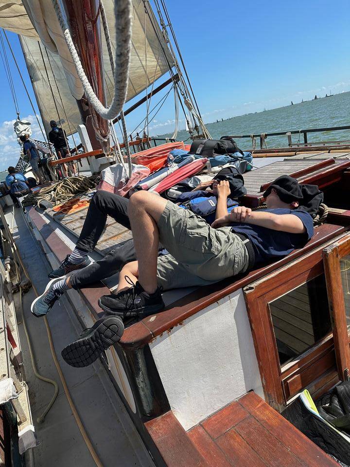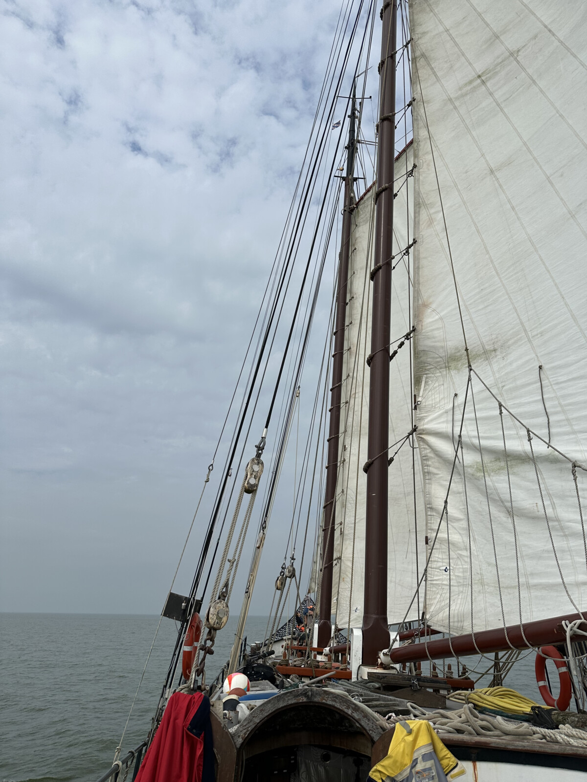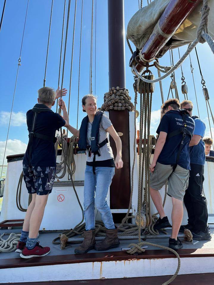 Am nächsten Morgen war wieder um 8 Uhr Frühstück, doch es ging erst später um 10 Uhr los. Zusammen übten wir noch in der übrigen Zeit Festmacherleinen zu werfen: Schwerer als gedacht! Nachdem wir aus der Hafeneinfahrt waren, waren die Segel schnell oben. Nach einem leckeren Erdbeerquark gab es zum Mittag Frikadellen im Brötchen. Nachmittag waren wir dann wieder im Heimathafen der Tjidgest angekommen, wir waren wieder in Stavoren. Nachdem alle Siebensachen wieder von Bord waren, ging es für alle auch schon wieder zurück nach Düsseldorf.