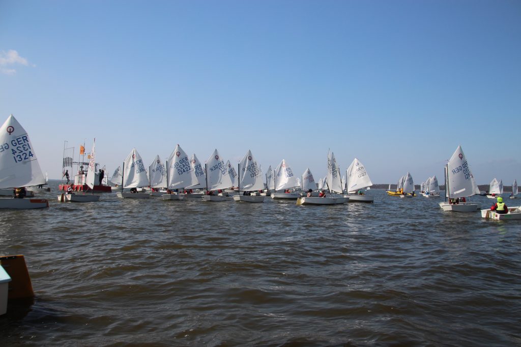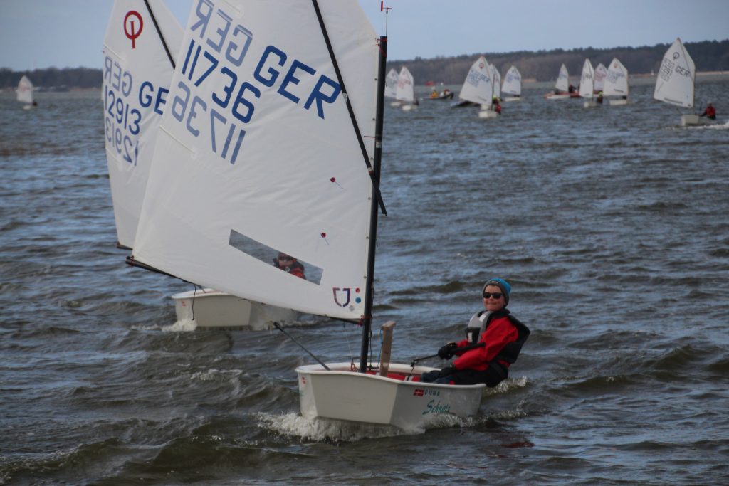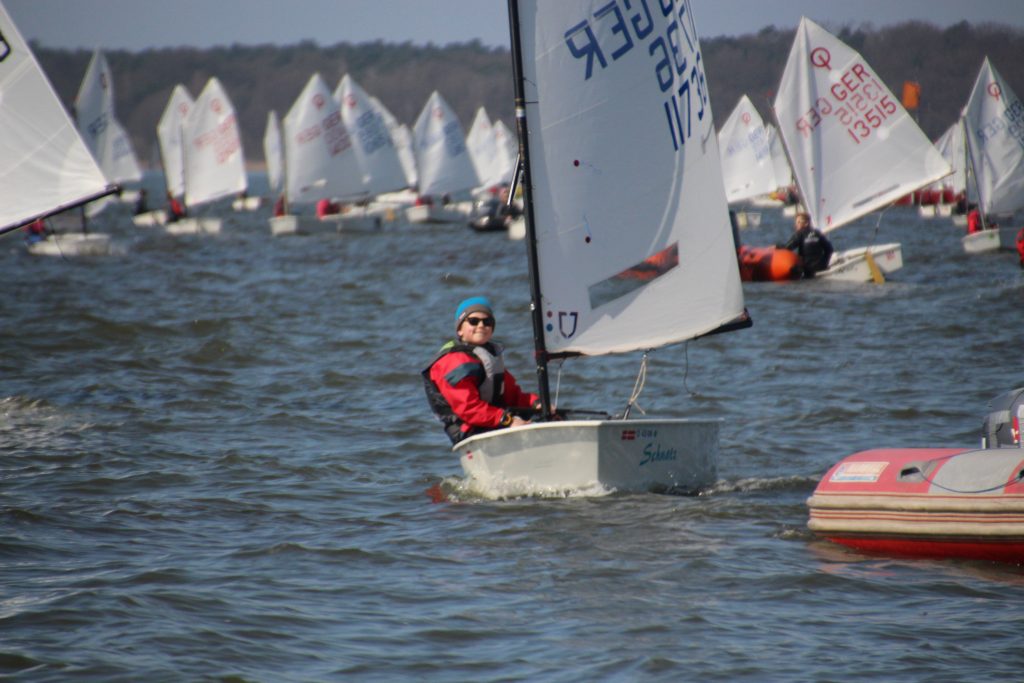 Seit einem halben Jahr darf ich den vereinseigenen Opti Schnatz leihweise mein eigen nennen. Nach der guten Vorbereitung durch Isabella und Mark und ein paar Wintertrainingseinheiten bei Harald Weichert war ich bereit, in die Segelsaison zu starten. Vor meiner ersten Regatta, dem Opti-Kick-Off am Steinhuder Meer war ich echt aufgeregt. Ich dachte, dass das Steinhuder Meer auch ein Meer sei, aber im Nachhinein stellte sich dann für mich heraus, dass es nur ein sehr großer See ist. Es war eine sehr große Regatta mit 140 Optis, wovon 70 Klasse A und 70 Klasse B gesegelt sind.