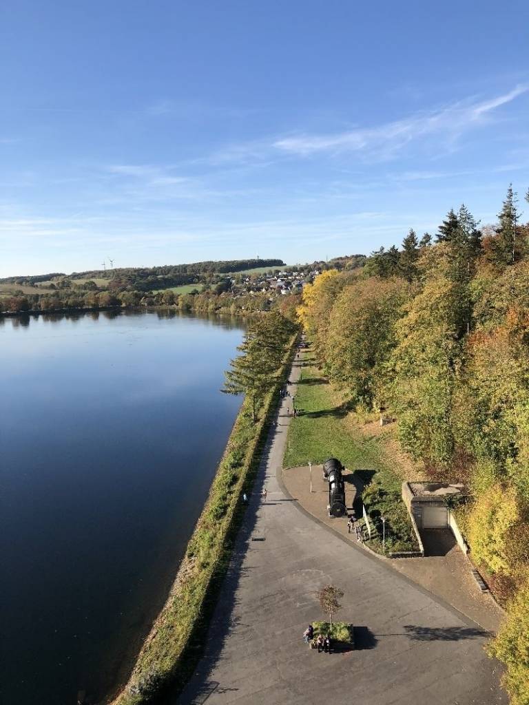 Als nächster großer Ausflug stand die Talsperre, welche östlich vom See ist, als Ziel. Das Wetter war perfekt, es gab keinen Regen und viel Sonne. Wir machten uns direkt nach dem Frühstück zu Fuß auf den Weg, und konnten die gesamte Zeit den schönen Ausblick auf den See genießen. Um die Mittagszeit gab es ein kleines Mittagessen auf einer Wiese mit Seeblick, nachmittags waren wir an der Talsperre angekommen. Für alle war der Eindruck eine Talsperre von der Nähe aus zu sehen atemberaubend. Trotz einiger schmerzender Füße und schlechter Kondition haben alle den Tag gut überstanden und konnten am Abend mit den Betreuern bei gemütlichem Kaminfeuer die unterschiedlichsten Spiele spielen.