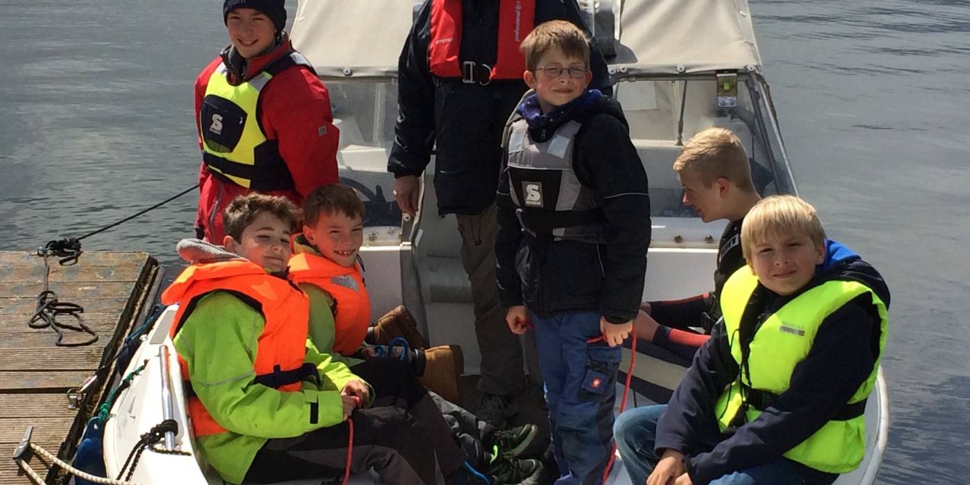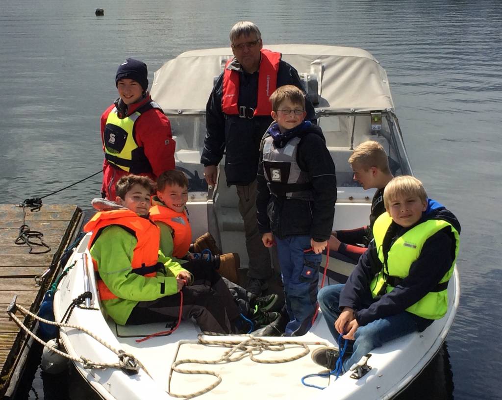 Zum Trainingsende ging es wieder auf die See-Möve (unser Elektroboot) wo Mark und Willem mit den Optikindern Knoten nach der langen Saisonpause übten.