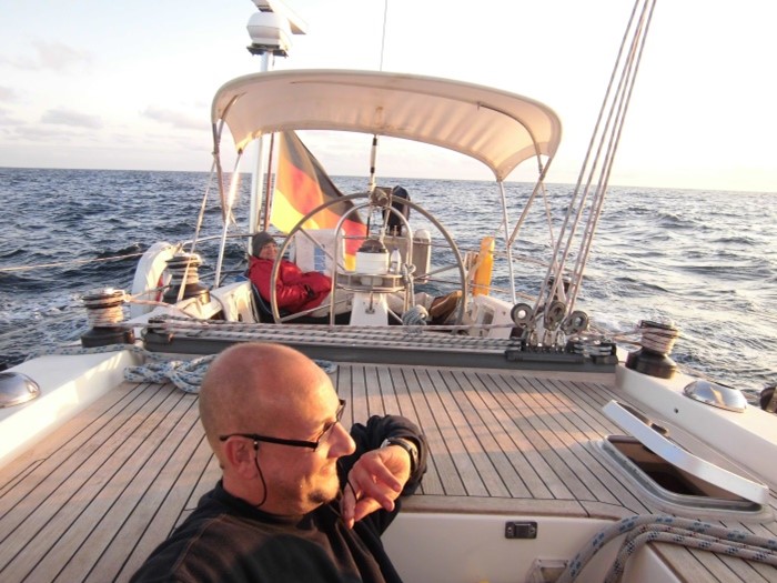 Nachdem ich am 7.8. erneut angesprochen wurde, mich an einer Yachtüberführung zu beteiligen, habe ich kurzerhand zugesagt und einen Flug nach Lissabon nur zwei Tage später gebucht, da ich diese tolle Yacht schon lange einmal segeln wollte. Die SY Verano wurde 1982 auf Kiel gelegt und befindet sich mit hochwertiger Ausstattung in einem echten Liebhaberzustand! 2010 erfolgte eine neue, dunkelblaue Rumpflackierung und auch das gesamte Teakdeck wurde vollständig erneuert. Mehr Details dazu unter: http://www.segelclubalster.de/galerie. Besonders gefreut hat mich dabei, dieses elegante Schiff weitab von der Küste auf offenem Wasser zu segeln und noch viel mehr, die Segelfreundschaft mit dem Yachtmanager Rainer Seehase zu begründen – Chapeau Rainer!