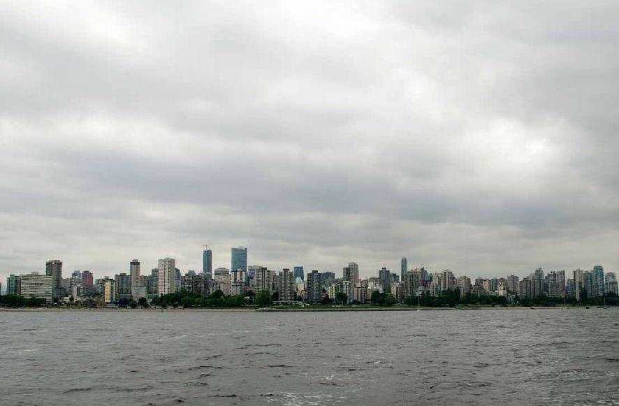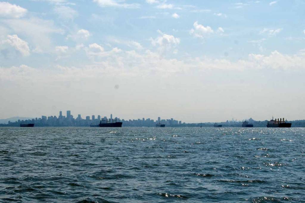 Am nächsten Tag geht es gegen Mittag endlich los. Wir fahren unter der Burrard Bridge her und sehen an unserer Steuerbordseite die beeindruckende Skyline von Vancouver.