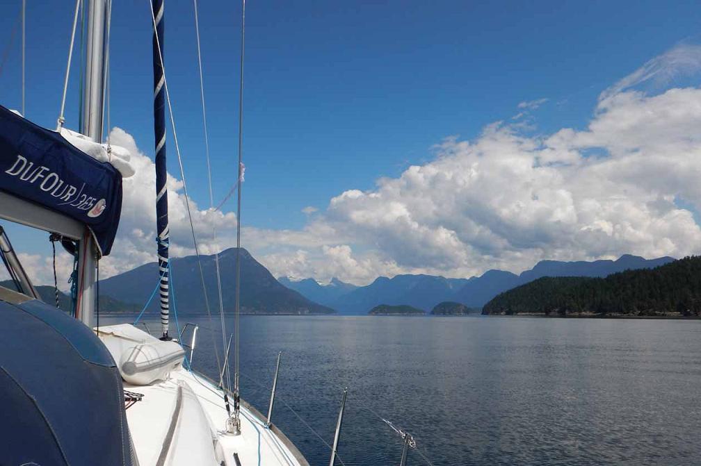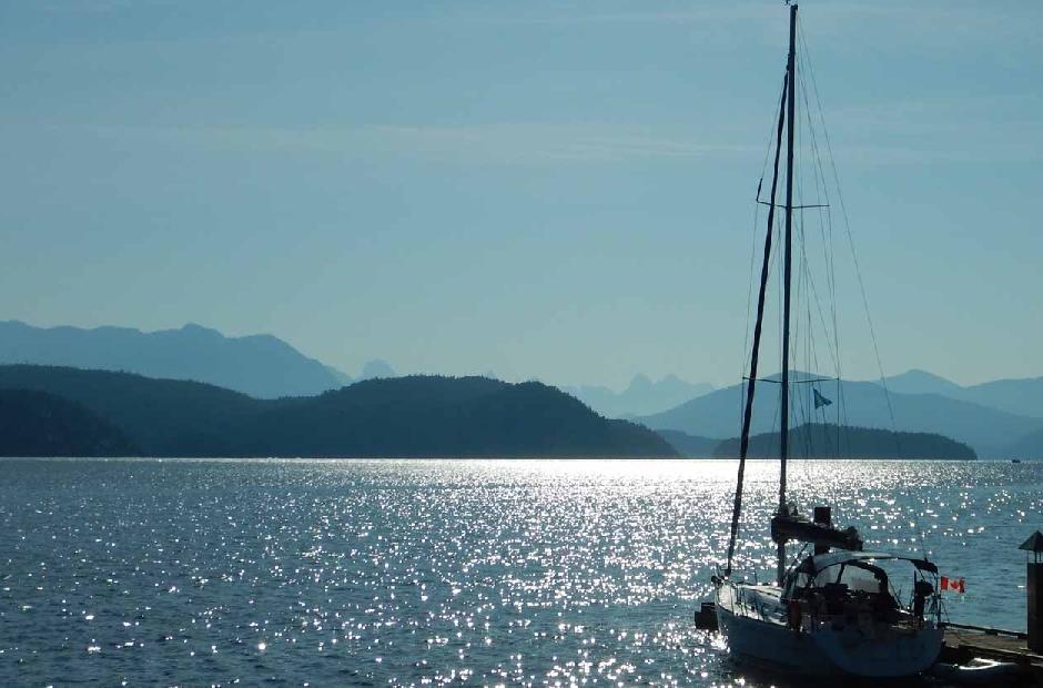 Es geht bei wenig Wind die Sunshine Coast nach Nordwesten zum kleinen Städtchen Powell River.