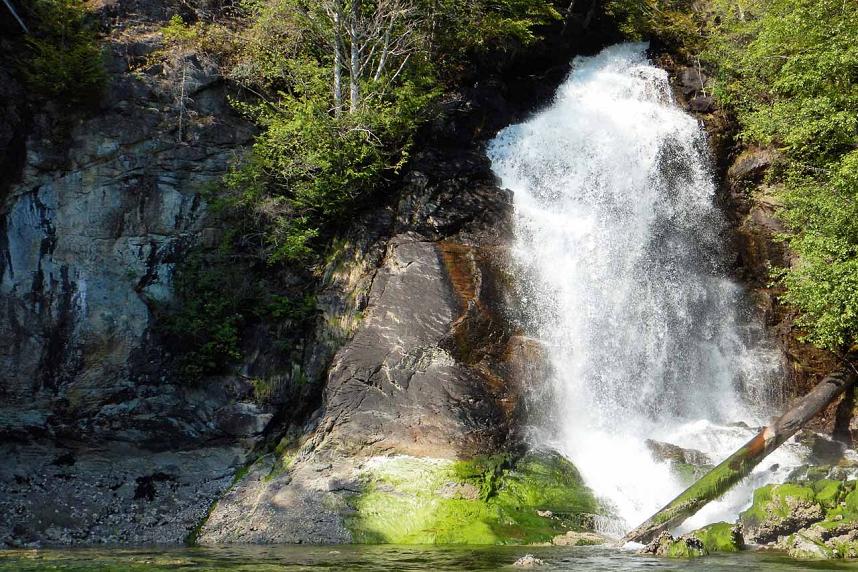 Anker auf – es geht weiter- Zahlreiche Buchten und Inseln gilt es hier noch zu erkunden. Zwischendurch laden erneut der tolle Sonnenschein und eine schön Brise zum Fotoshooting der Segelyacht ein. Der Skipper lässt sich im Beiboot aussetzen und fotografiert und filmt. Bei den Cassel Lake Falls machen wir halt und erkunden die nah gelegenen Cassel Lake.