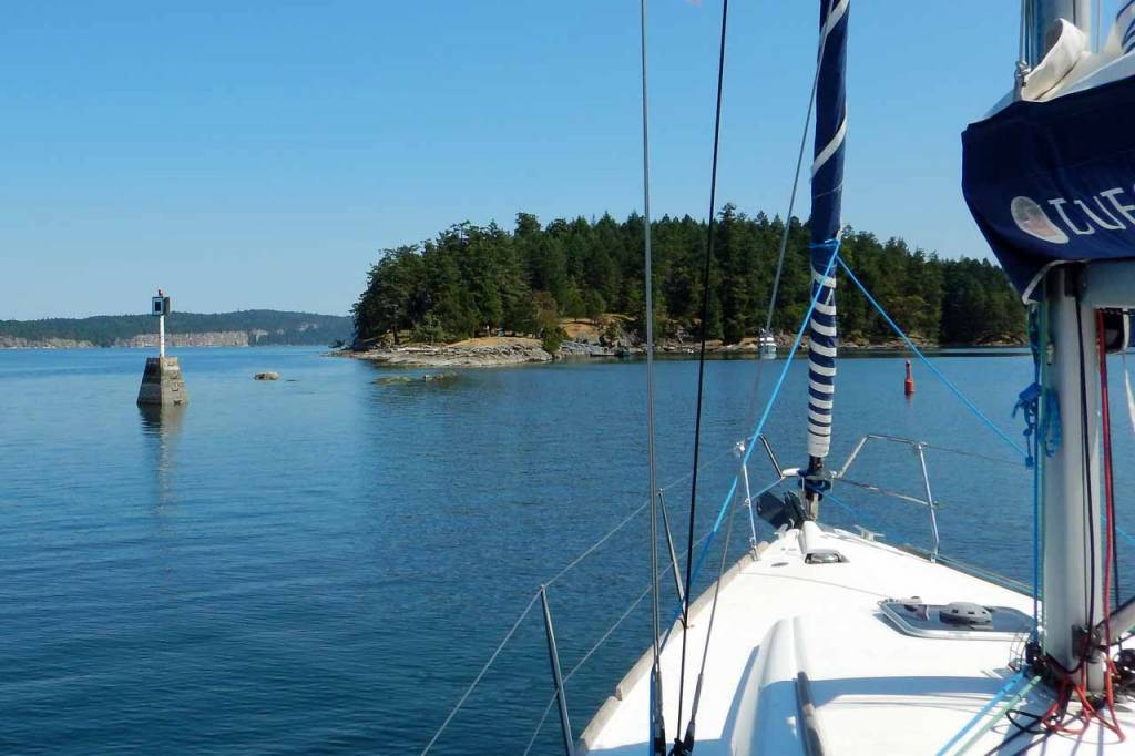 Zum Abschluß unseres Törns wollen wir uns noch einen weiteren Höhepunkt der Reise gönnen. Die noch weiter südlich gelegenen Gulf Islands wollen wir ansteuern. Diese Inseln sind deutlich flacher jedoch gleichwohl alle bewaldet. Wir passieren die äussere Inselkette durch die Gabriola Passage und ankern in Pirates Cove.