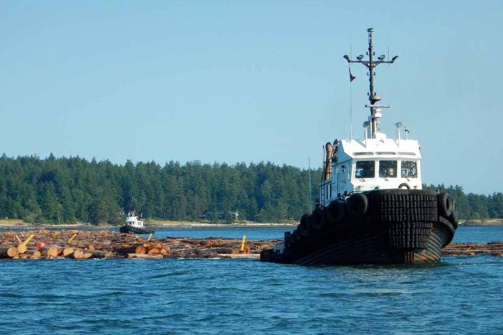 Jetzt müssen wir wirklich Richtung Heimat. Am Vormittag überholen wir erneut ein Floß aus zahlreichen Baumstämmen. Diesmal wird es sogar von zwei Schleppern dirigiert und gezogen.