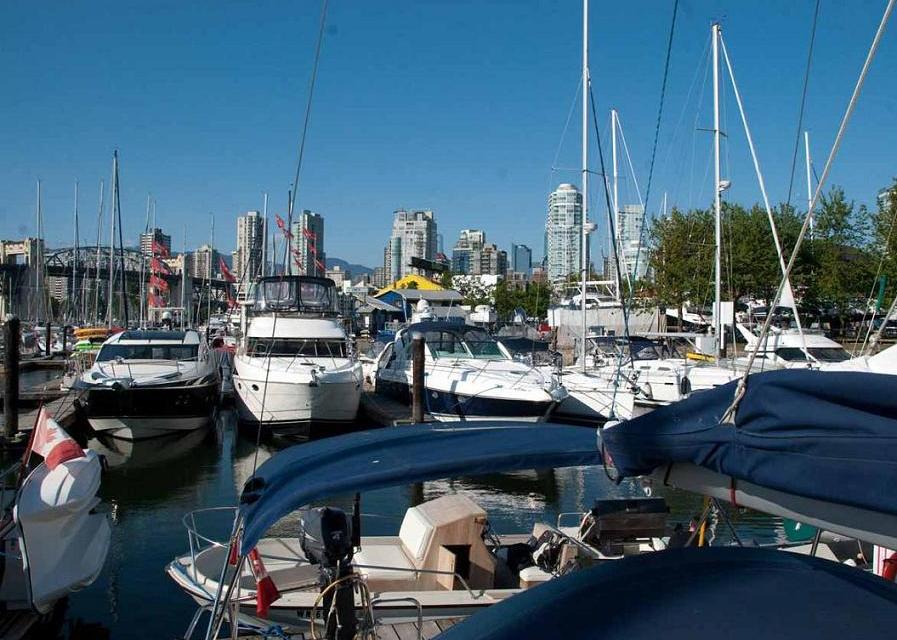 Ein Großraumtaxi bringt uns flott vom Flughafen nach Granville Island, einer kleine Halbinsel inmitten der Großstadt Vancouver. An diesem wunderbaren Ort mit zahlreichen Souvenirläden und Märkten befindet sich die Basis von Cooper Boating. Wir werden freundlich begrüßt und richten uns auf der „Sainte Reine II“, unserem schwimmenden Heim für 2 Wochen, wohnlich ein. Anschließend geht es mit dem Taxi zum Großeinkauf in den Supermarkt.