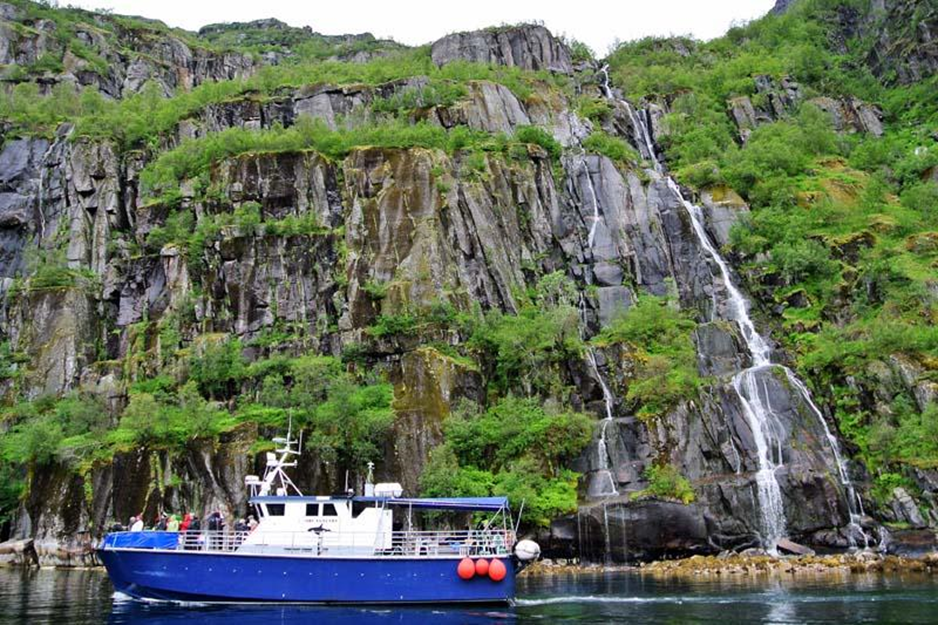 Trollfjord – Wasserfall und Ausflugsboot