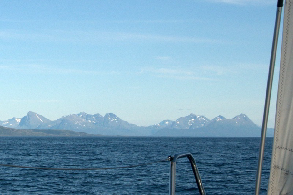 Um 16.00 Uhr legen wir in Andenes mit unserer Delphia 37 ab und verbringen tolle Segelstunden vor der eindrucksvollen Kulisse der Lofotenwand. In den Abendstunden verlassen wir die offene See und tauchen wieder in die Fjordlandschaft Richtung Tromsø ein.