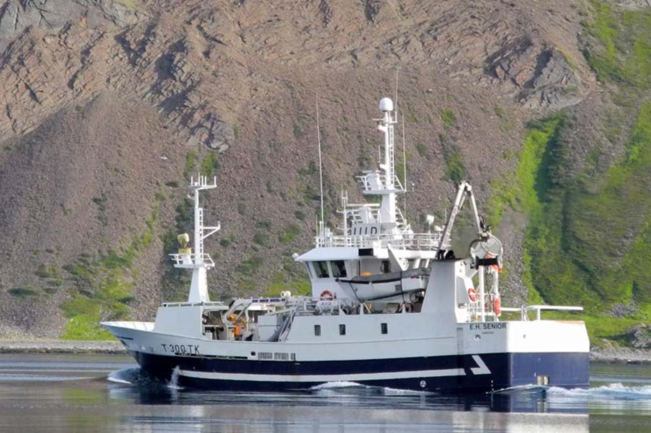 Fischtrawler E.H.Senior in den frühen Morgenstunden südlich von Magerøya