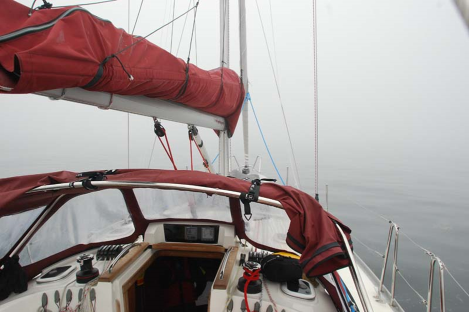Um 01.20 Uhr bricht nach einem Winddreher der Anker erneut aus und treibt die Arctiv Vision Richtung Land. Schnell holen wir den Anker wieder auf. Wieder haben sich enorme Mengen Kraut am Anker gesammelt. Wir verzichten auf die weitere Nachtruhe und segeln Richtung Skjervöy. Für heute ist Wind aus West / Südwest mit der Stärke 6 angesagt. Noch haben wir wenig Wind und erneut schlechte Sicht aufgrund des Nebels im Stjernsundet. Wir runden Silda und lassen Loppa an Steuerbord liegen. Der Wind nimmt auf 25 Knoten zu, stark gerefft kreuzen wir zu unserem Ziel auf. Kaum sind wir im offenen Gewässer quälen wir uns mit stark drehendem Winden aus Südwestlichen Richtungen zwischen 10 und 30 Knoten Geschwindigkeit. Das Segeln ist bei diesen Wind und Seegangsverhältnissen kein Vergnügen.