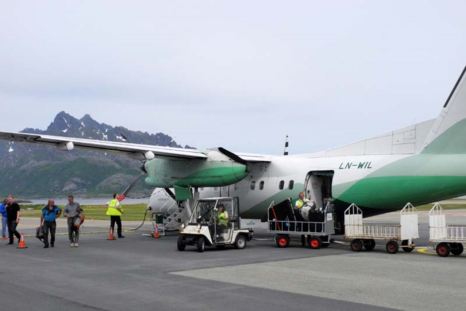 Wir fliegen von Düsseldorf über Oslo nach Bodø und von hier weiter auf die Lofoten nach Svolvær. Mit jedem Umsteigen werden die Flugzeuge kleiner. Von Bodø aus geht es mit einer Turbo Prop Maschine von der norwegischen Inlandsfluggesellschaft Widerøe nach Svolvær.