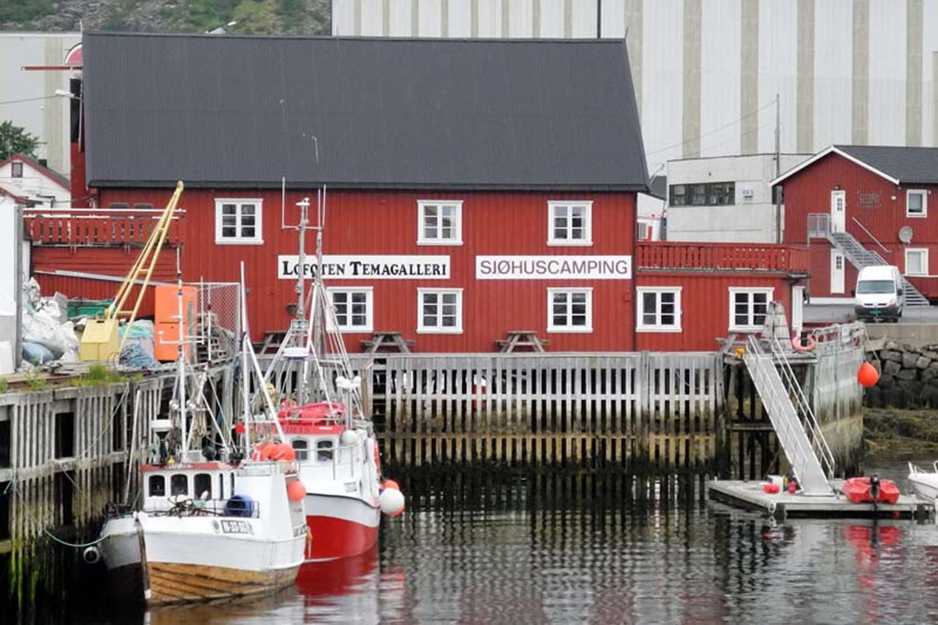 Das Taxi bringt uns in 15 Minten Fahrt zum Svolvær Sjøhuscamp unserer Herberge für heute Nacht. Sjøhuscamp liegt im Zentrum von Svolvær und bietet gemütliche Zwei- und Vierbettzimmer mit Miniküche oder Gemeinschaftsküche. Wir haben ein Vierbettzimmer mit Gemeinschaftsküche gewählt. Wir erkunden unsere nähere Umgebung zu Fuß. Mittlerweile hat leichter Regen bei milden Temperaturen eingesetzt.