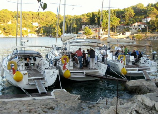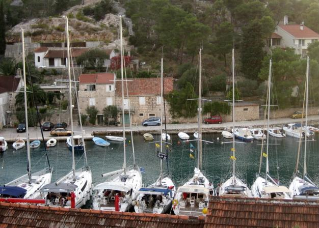 Wir starteten mit einer Flotille von 7 Booten (5 davon mit SKU Mitgliedern) zum Törn um die Inseln Brac und Hvar in Kroatien. Bei der vorausgegangenen Skipperbesprechung wurde Rogac, ein kleiner Ort auf der Insel Solta als erstes Ziel bestimmt. Das Wetter war gut und nachdem wir die schützende Bucht bei Split verlassen hatten, frischte der Wind auf und wir machten, trotz gereffter Segel, gute Fahrt.