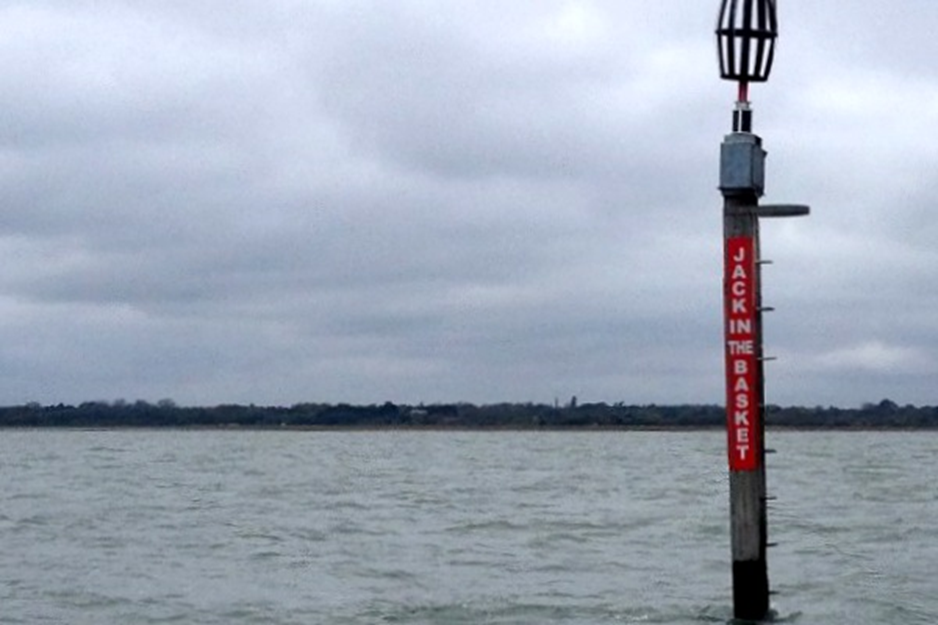Bei der Tonne „Jack in the Basket“ in der Nähe der Flußmündung des River Lymington bergen wir unsere Segel und folgen dem Fahrwasser den Fluß aufwärts. Angeblich sind früher die Frauen der Fischer zu dieser Tonne mit Verpflegung und Getränken in Körben für Ihre Männer hinaus gerudert.
