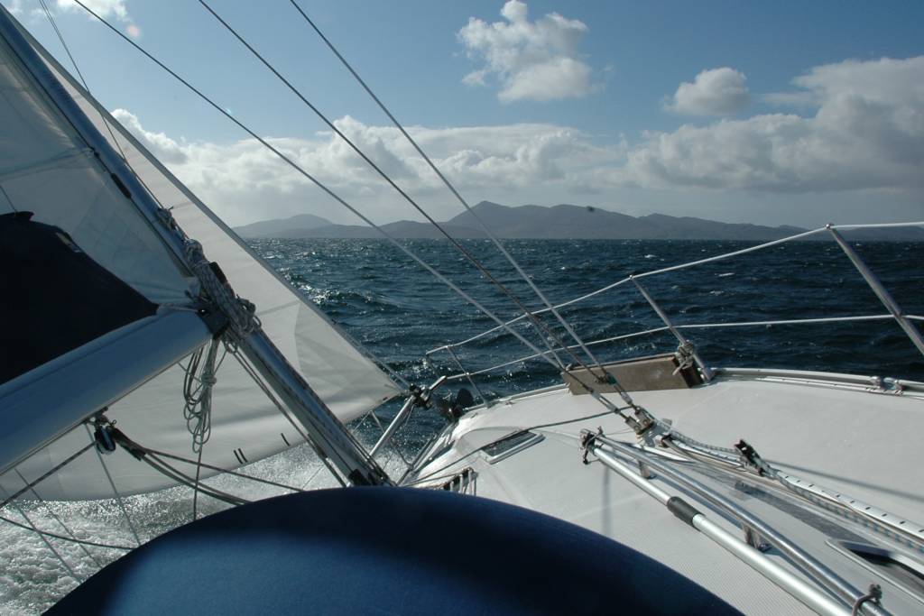 Evenstar beschleunigt mit Leichtigkeit auf 7 bis 8 Knoten. In der Hebriden See surfen wir die langen Wellen mit bis zu 12 Knoten auf der Logge hinunter. Gigantisches Segeln bei Raumschots Wind lässt uns vor Begeisterung jubeln.