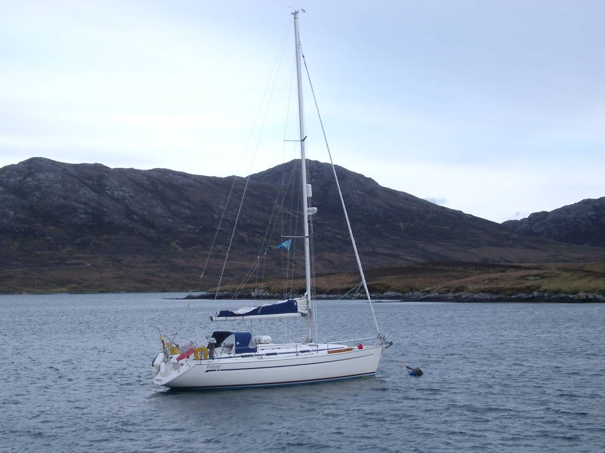 Nun kreist also unsere Evenstar, eine Bavaria 38, munter um die Mooring Tonne in Lochmaddy. An einen Schlag durch den Sound of Harris Richtung St. Kilda ist heute bei den angekündigten 8 Windstärken aus südlicher Richtung nicht zu denken. Schweren Herzens beschließen wir erst einmal weiter gen Norden nach Stornoway zu segeln. Werden wir St. Kilda auf diesem Törn überhaupt noch ansteuern können ?